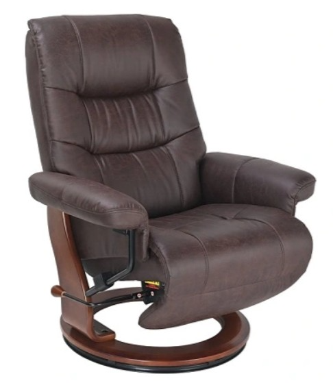 The BenchMaster Valencia II Flip-Up Footrest recliner features a flip-up footrest mechanism and 360° swivel base, designed for space-savvy comfort. Upholstered in dark brown fabric, it boasts a hidden adjustable headrest, 1.8 HD foam padding, and a steel tube frame.Read More