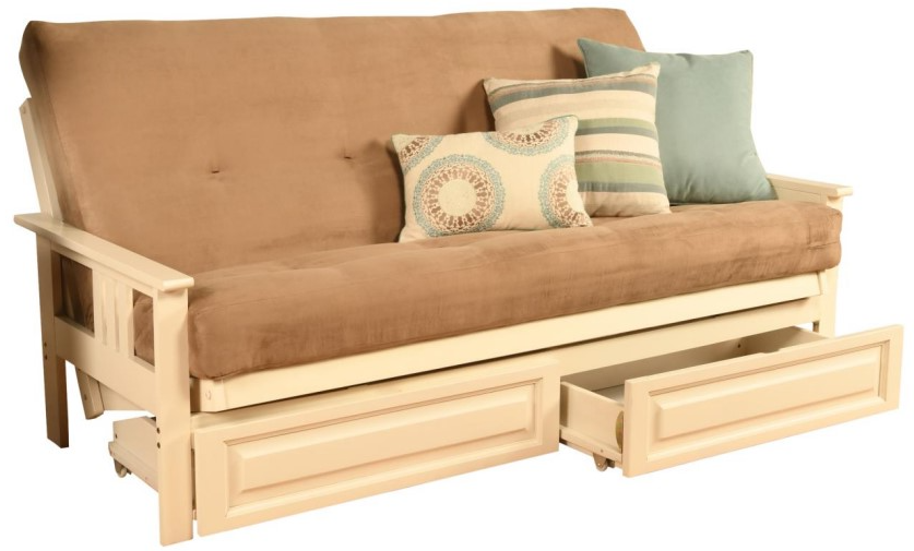 The mission style design on the arms of this solid wood futon frame cradle your mattress for sleeping comfort - pillows and sheets stay put when using it as a bed. This easy-to-adjust frame comes in an array of colors and the comfort of sofa height seating.Read More