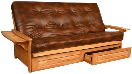 The mission style design on the arms of this solid wood futon frame cradle your mattress for sleeping comfort - pillows and sheets stay put when using it as a bed. This easy-to-adjust frame comes in an array of colors and the comfort of sofa height seating.Read More