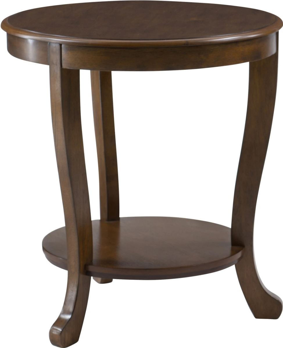 The Marissa accent side table exudes timeless charm with its warm hazelnut finish and graceful round design. Tapered legs support a smooth top and a lower open shelf, offering both style and function. Perfect as an end table or accent piece in any traditional or transitional space.Read More