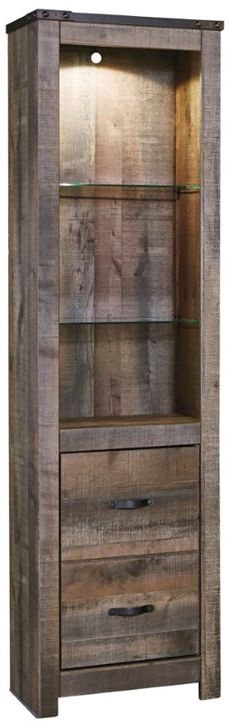 Entertain a rugged yet refined sense of style with this entertainment center pier. Its rustic finish and plank-style details pay homage to reclaimed barn wood, while metal banding with nailhead accents infuses a touch of industrial cool.Read More